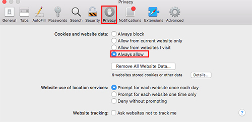 Set Safari Privacy