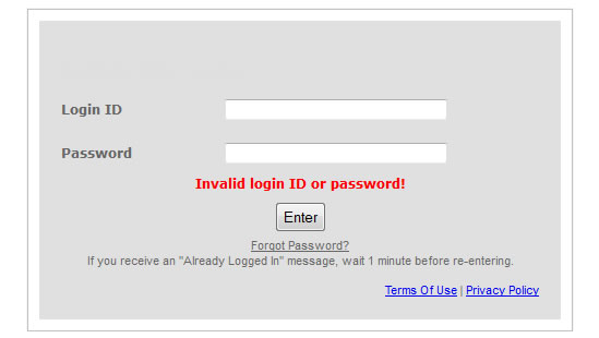 - Refer to the resolutions for Invalid Login ID as the same error message will result from incorrect login ID information. Show Me
